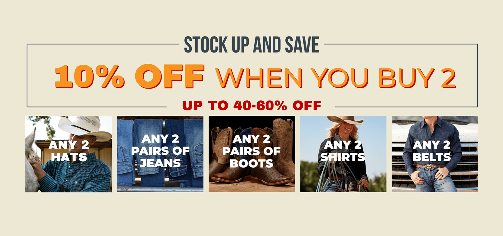 From the top of your cowboy hat all the way down to your boots, we have exceptional western clothing that shows the world that you are country at heart.