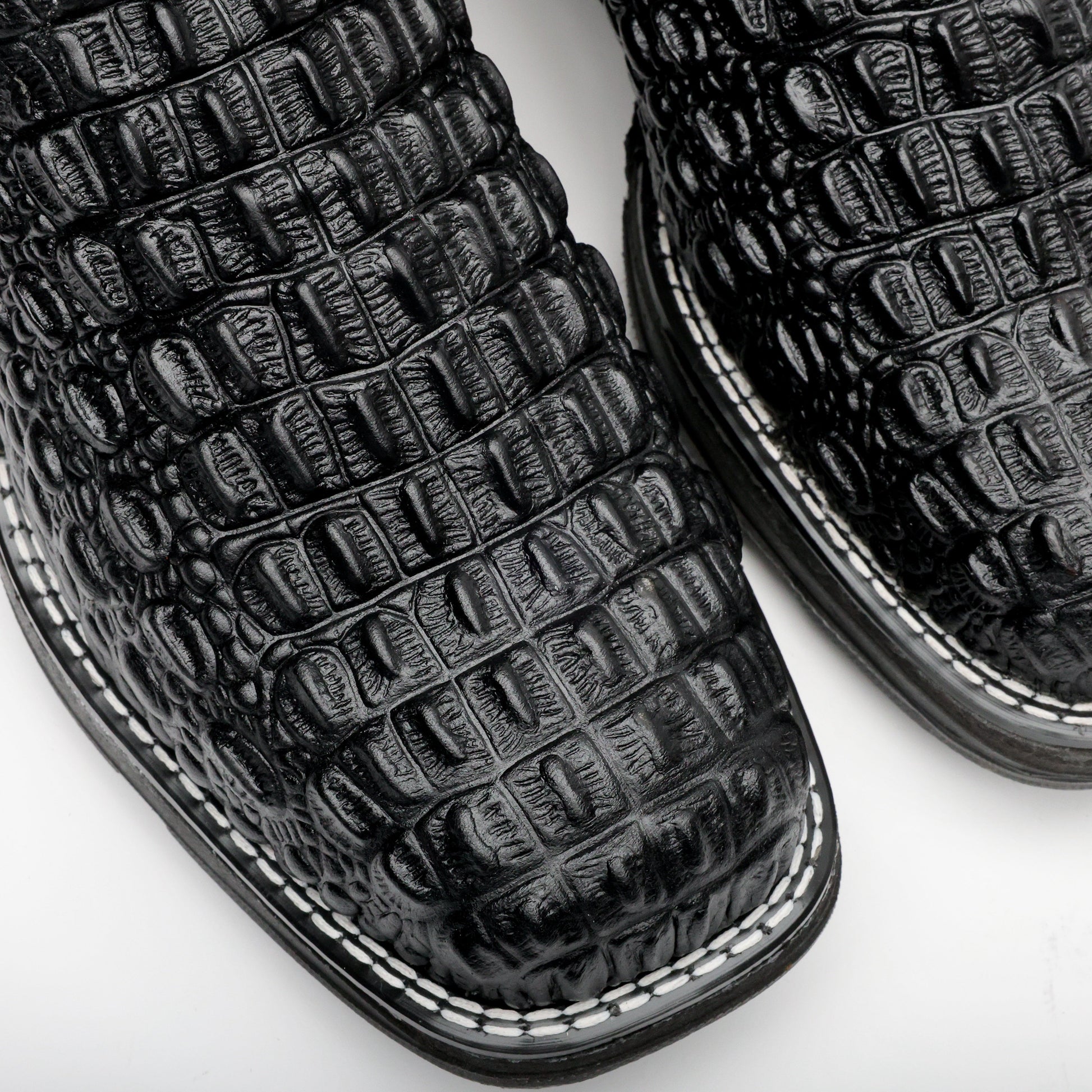 Black Caiman Hornback Leather Boots - 3D Sole Composite Toe